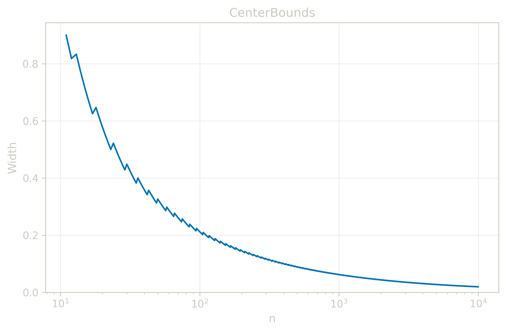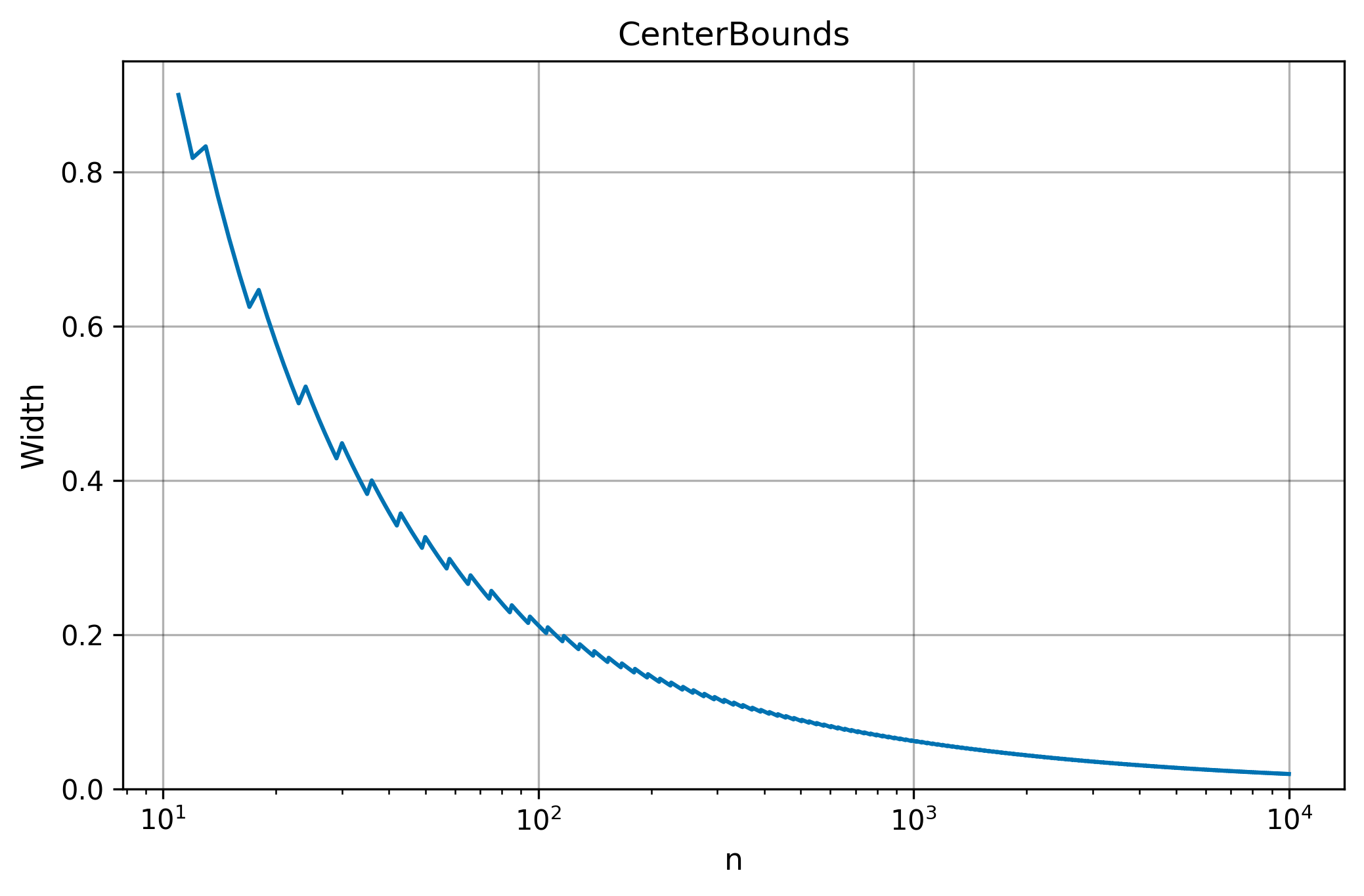 CenterBounds([1..10], 10^(-3))returns bounds containingCenter = 5.5- Bounds fail to cover true center with probability
