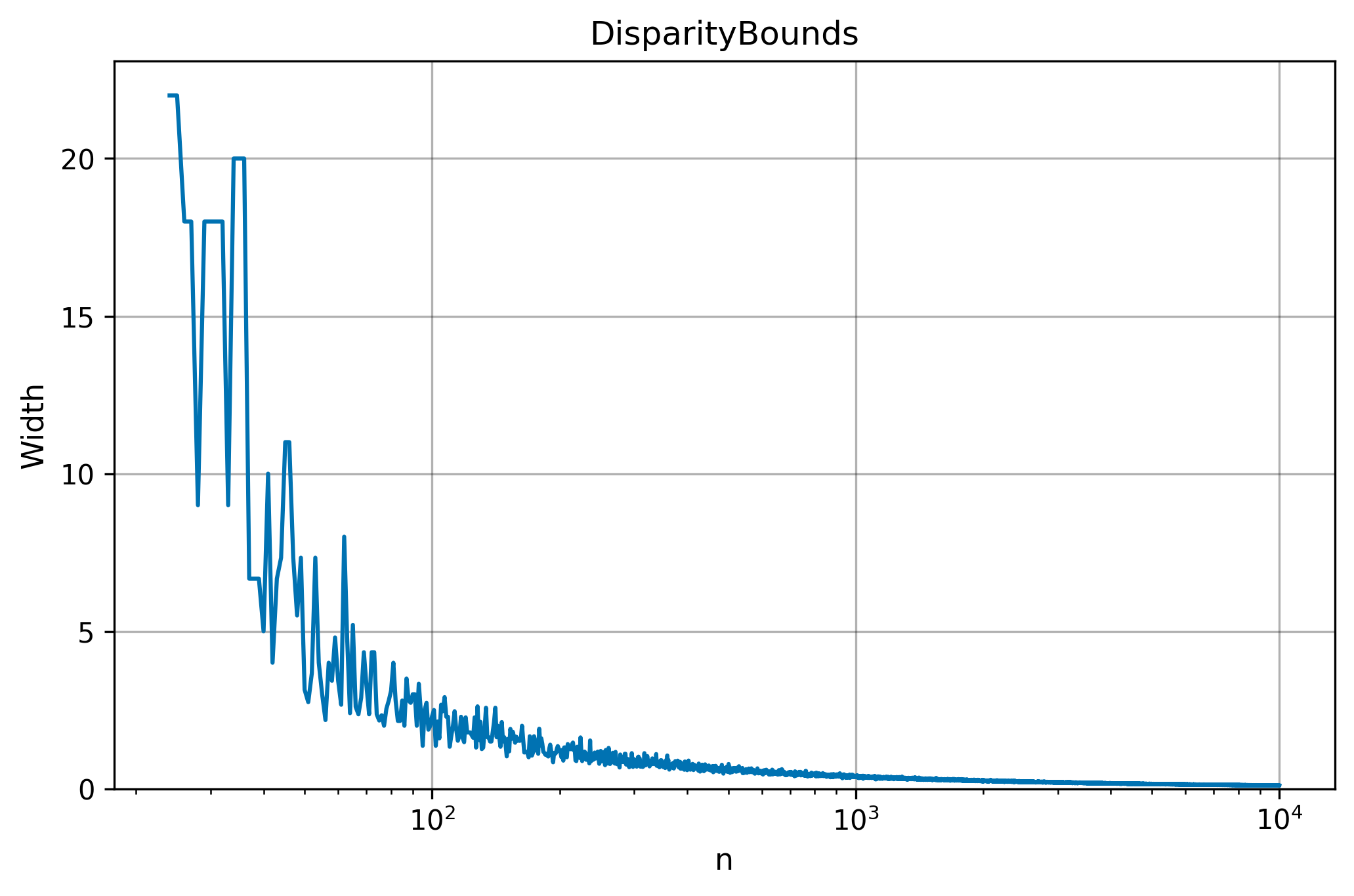 DisparityBounds([1..30], [21..50], 10^(-3))returns bounds containingDisparity